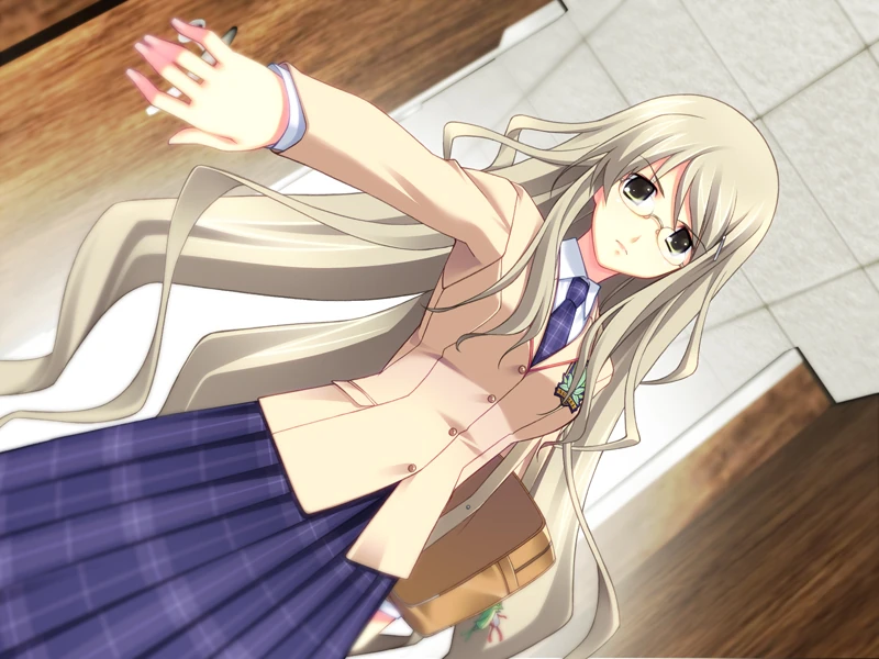Girl A introduces herself to him as Yua Kusunoki, and while he would rather avoid this stalker, she is very friendly and helpful to him. Because he is having a little trouble walking after his fall, Yua walks Takumi back to the building he lives on the roof of, and accompanies him back up to the metal container he lives in. While she is there, Yua befriends Takumi as he finds out they have a shared interest in the anime Blood Tune and its heroine Seira Orgel, and she seems to be impressed by all of his otaku knowledge.
