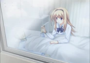 As Takumi's health kept spiraling, eventually he had to stay in the hospital. The Ir2 equation was discovered on the back of Takumi's essay, displayed in Shibuya, by the researcher Issei Hatano and later on, once Takumi found out about his powers, how N.O.Z.O.M.I. owned the hospital and their plans to collect people like him for Noah II by reading Gen'ichi Norose's mind, he hid himself away in a secret room at the end of a hallway that he made look like a dead end by creating a delusion that applied to everyone except himself and his younger sister, Nanami Nishijou. She did not even seems to recognize the room as separate from the hospital. Although, some patients of the AH Tokyo General Hospital could see Shogun as well and called him “Ami-chan” (allegedly short for Takumi-chan), creating in the same way a legend about a ghost in the hospital.