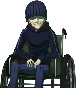 Shogun looks like a sick, small, and wrinkled old man despite having the height of a ten year old and is wheelchair-bound. He wears a black beanie